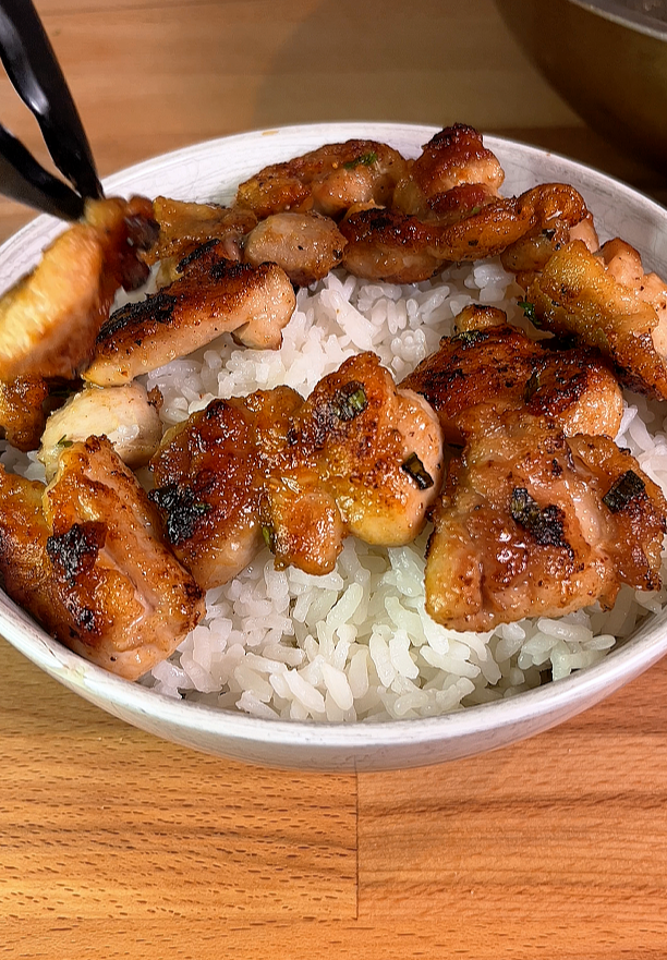 - Serve and enjoy: Spoon the lemon pepper chicken over a hot bowl of rice, serve with vegetables. Optional, top with an onsen egg. Enjoy!